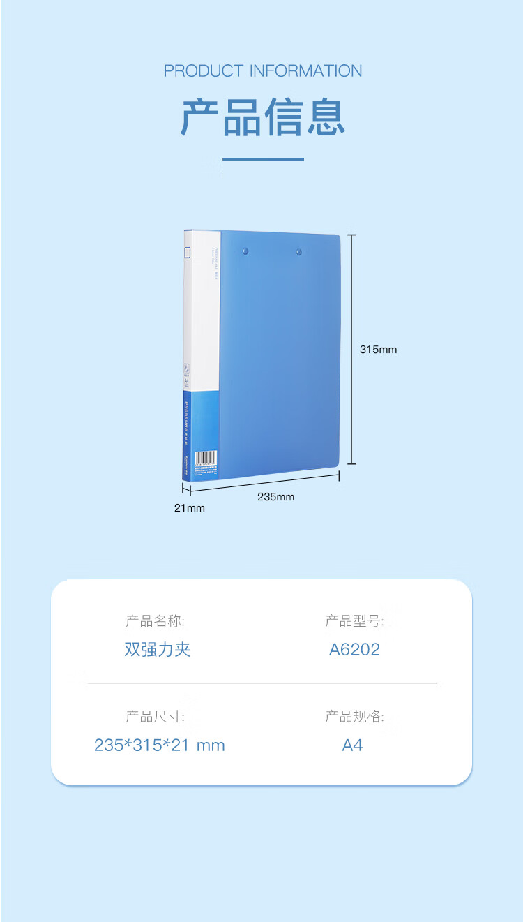 齐心(COMIX)A6202 双强力夹 A4 黑色 双夹 1个