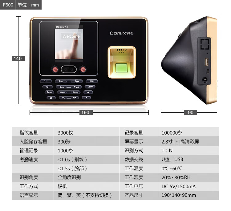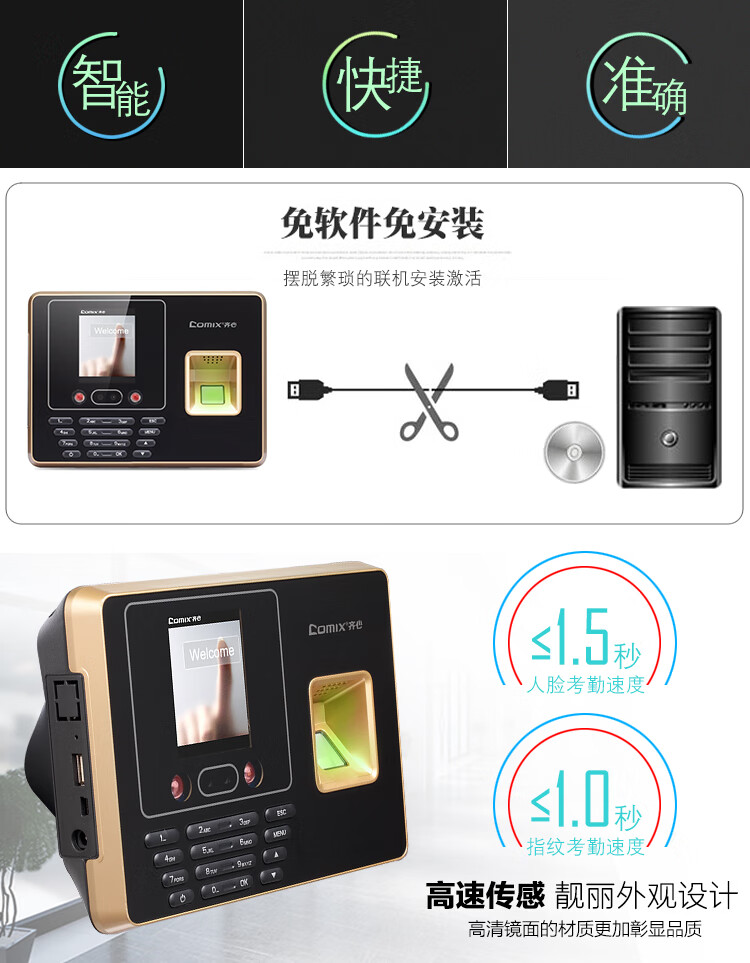 齐心(COMIX)DS2600考勤机 指纹打卡机人脸识别 刷脸签到机