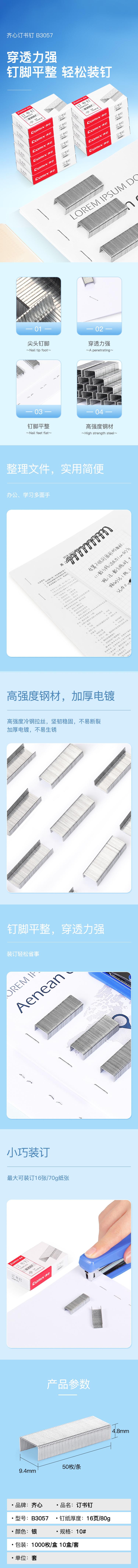 齐心(Comix)订书钉/订书针 1000枚/盒 10盒装大容量 10#订书机通用规格 B3057