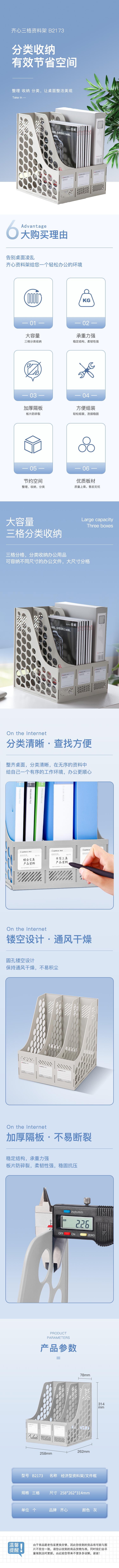 齐心(COMIX) B2173 三格 灰色 超省钱资料架