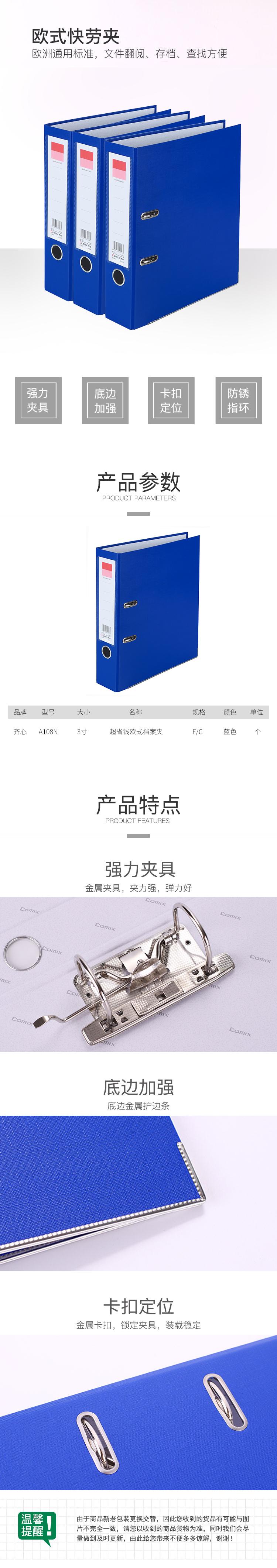 齐心(Comix) F/C 3寸欧式快劳夹/文件夹蓝色A108N