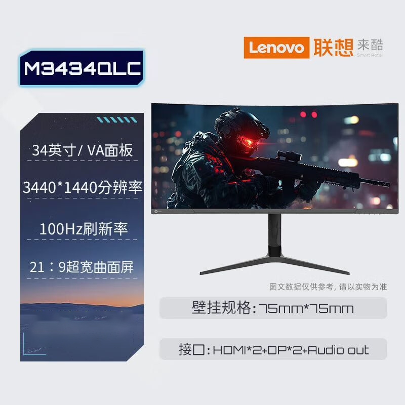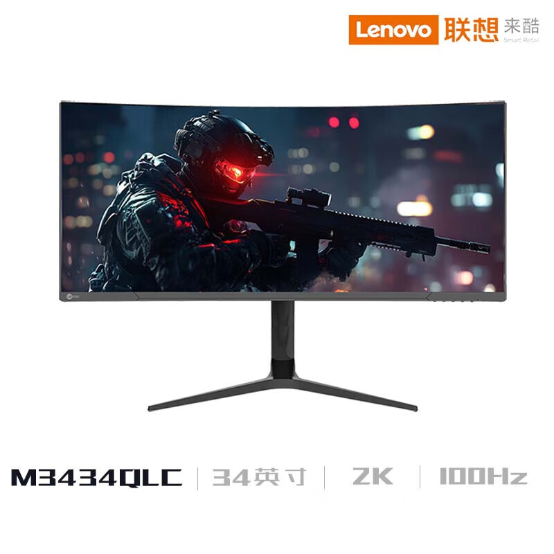 联想(Lenovo)34英寸带鱼屏显示器 准4K高刷 100Hz HDR 1ms 智能分屏 可升降 21:9超宽曲面电竞 游戏显示屏幕 M3434QLC