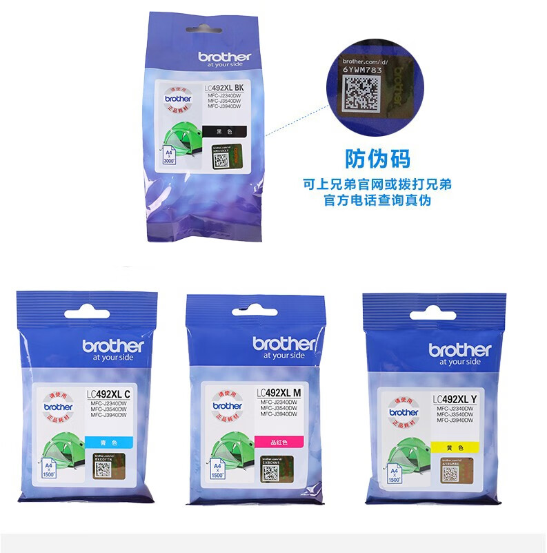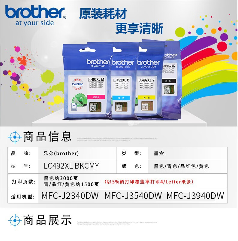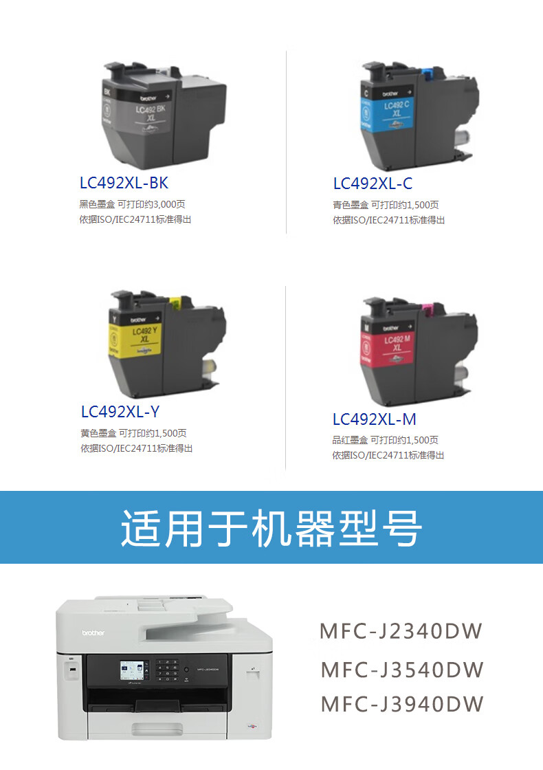 兄弟原装LC492XL M红色墨盒适用MFC-J2340DW/J3540DW/J3940DW打印机墨水(1500页)
