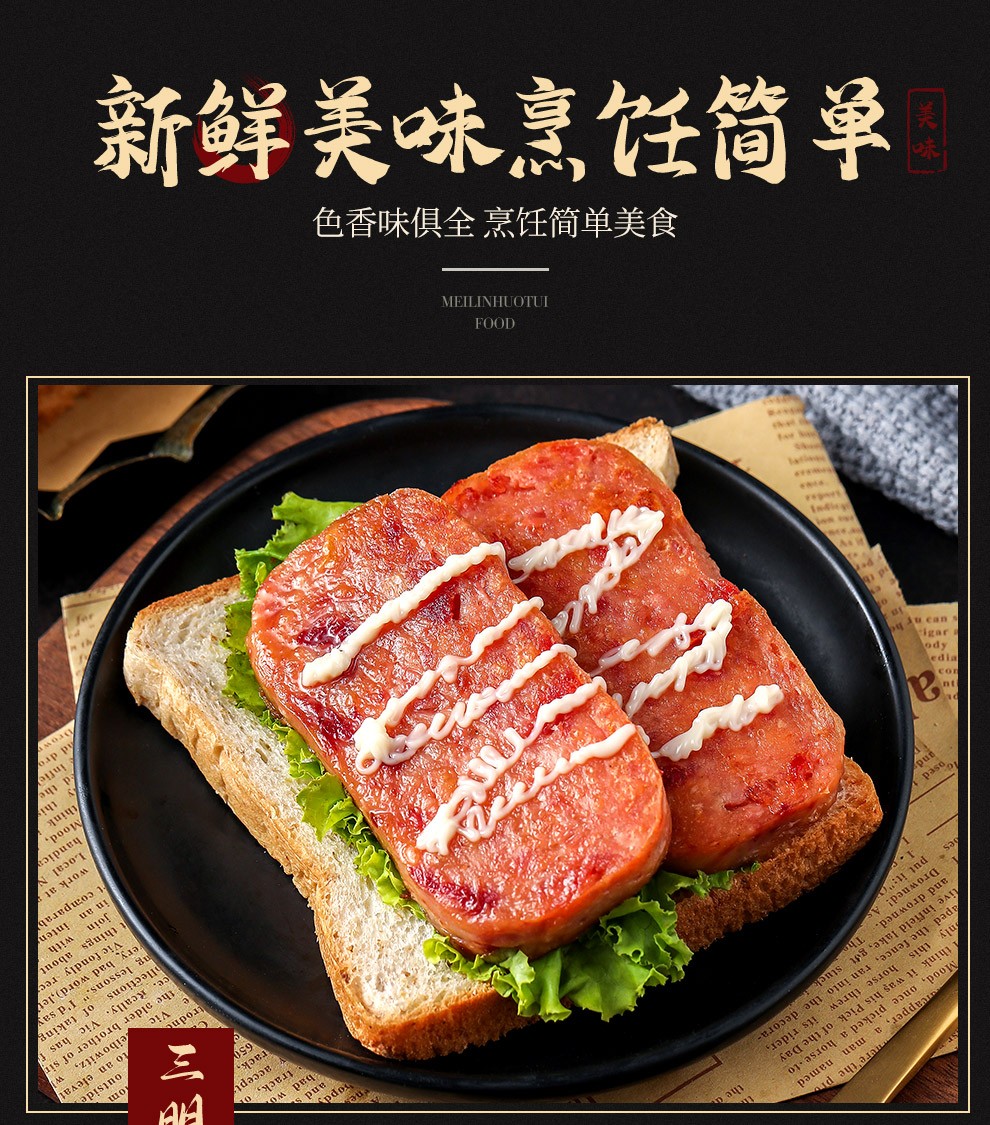 中粮梅林火腿午餐肉罐头198g*3罐 混色