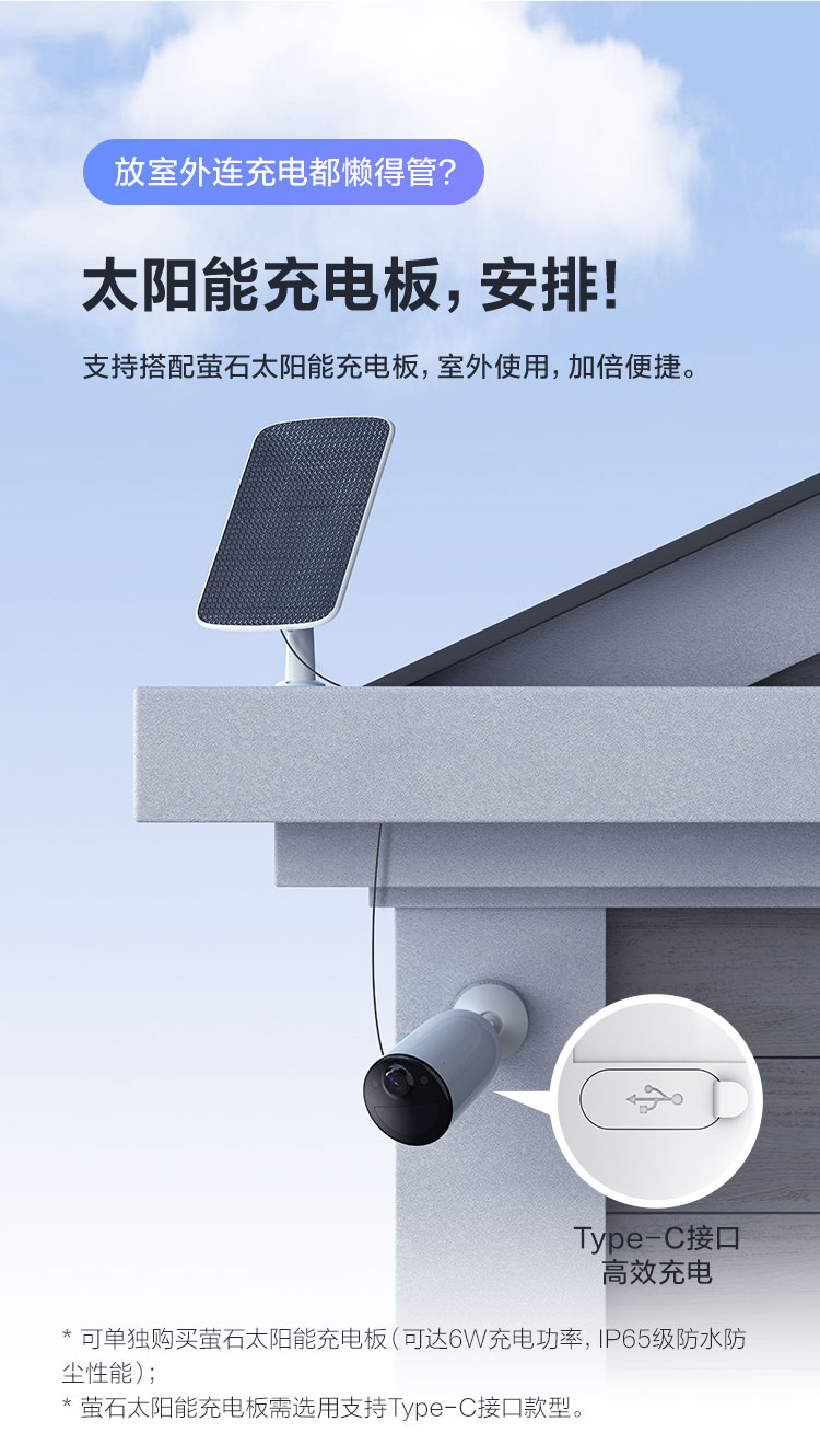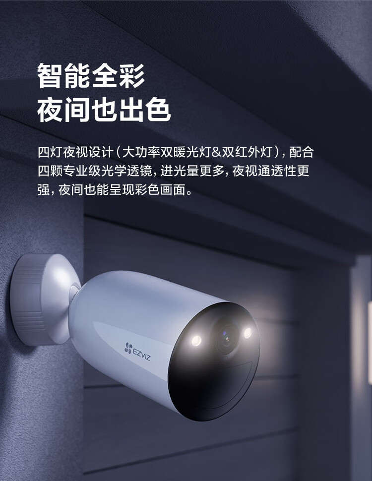 萤石 CB3 4G全彩全无线监控摄像头 200万像素1080P电池相机 内置电信eSIM卡 自带电池 网络摄像机