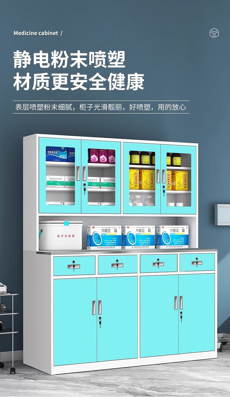 迪欧 医用西药柜诊所药品柜钢制治疗台处置柜展示柜子 1200*500*1800