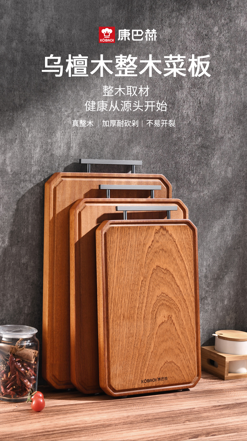 康巴赫乌檀木整木菜板-乌檀色/块 小号39*24*2.5cm