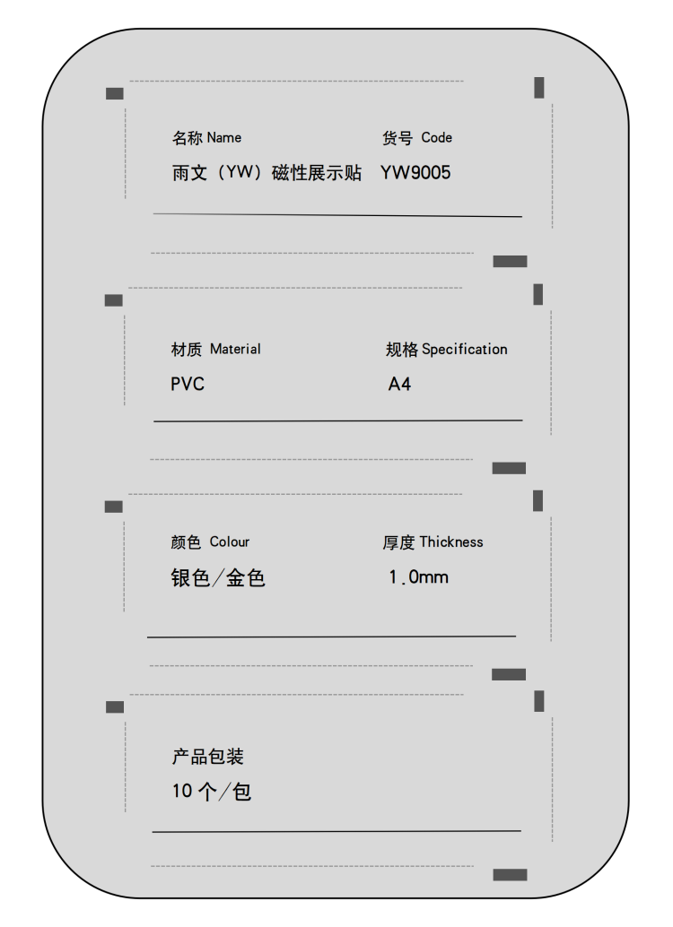 雨文文具(YW)磁性展示贴YW9005 银色/金色4A 312*220mm*10个