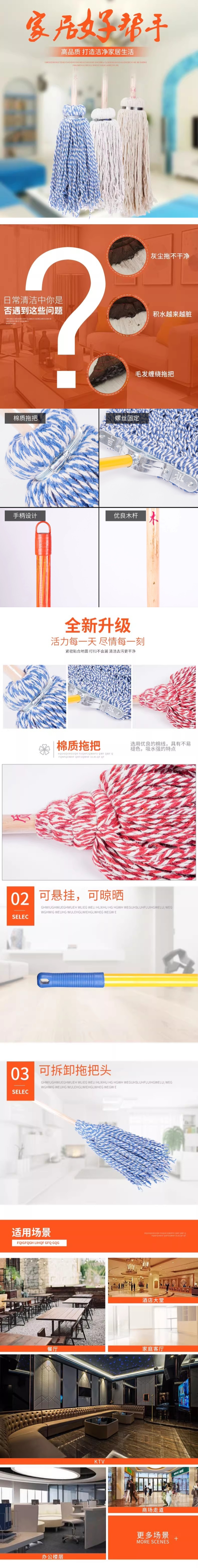 雨文文具(YW)拖把YW222-1 蓝线拖把 1.2m