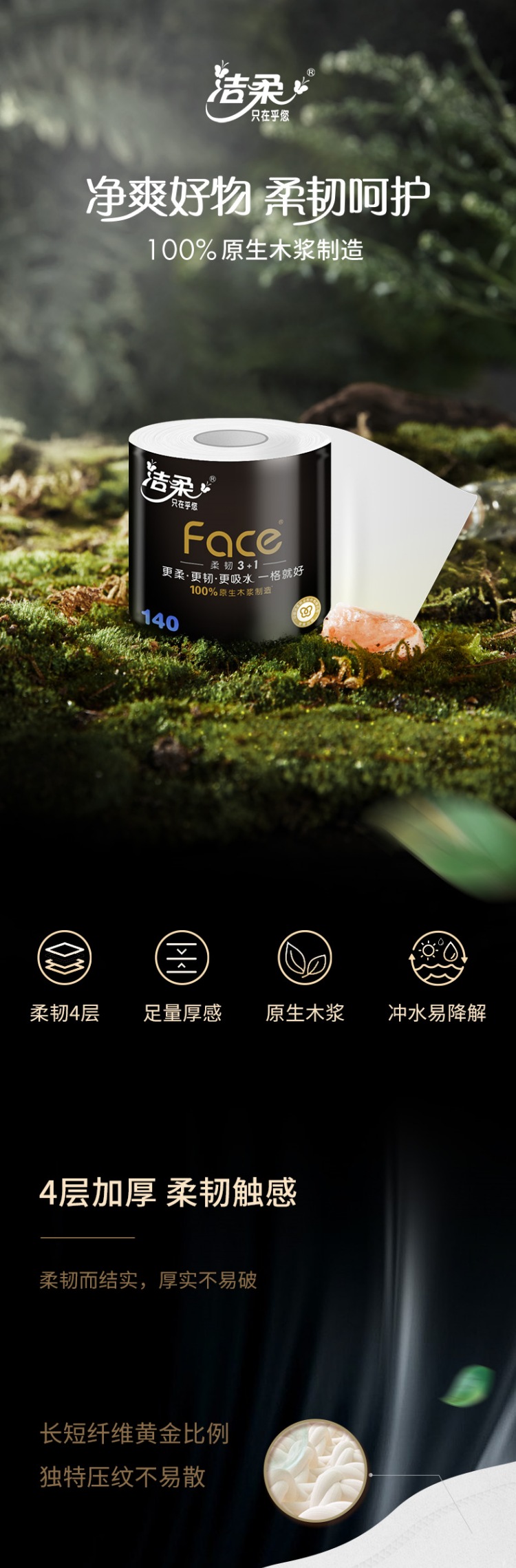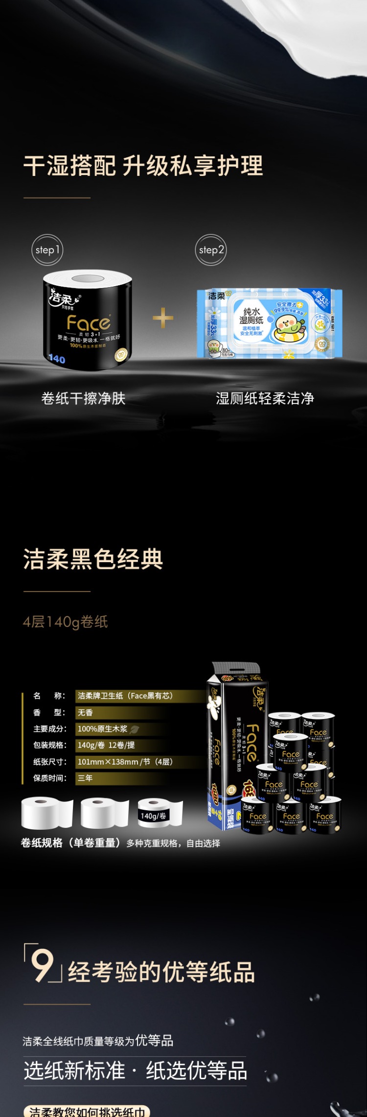 洁柔卫生纸140g(Face有芯)(12卷装)BJ168-12