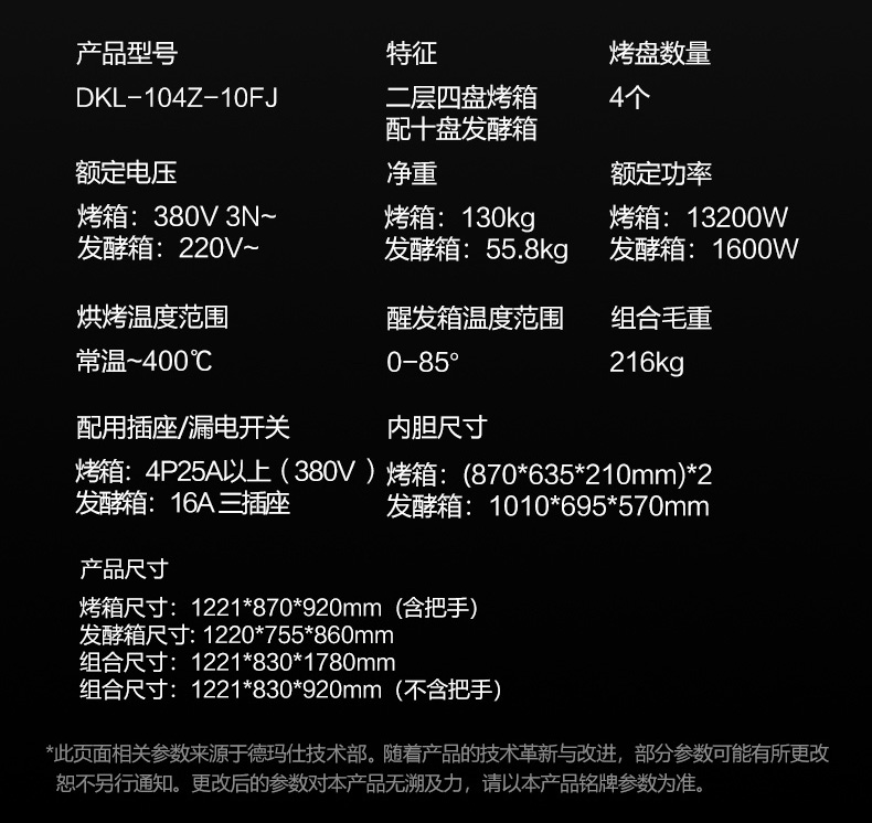 德玛仕 DEMASHI 烤箱商用组合烤箱发酵箱上烤下醒一体机DKL-104Z-10FJ