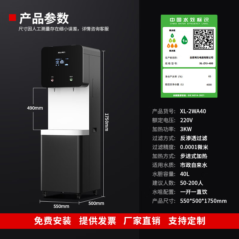 希力商用净水器立式直饮机过滤加热一体大流量直饮水机大型净水机XL-2WA40 单位:台