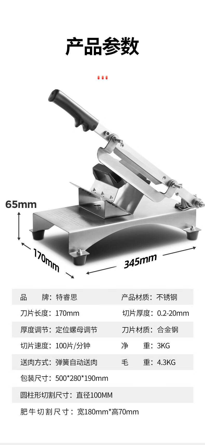 特睿思(TERUISI)羊肉卷切片机切肉片机家用手动切肉机肥牛薄片冻肉刨肉机小型羊肉切片神器