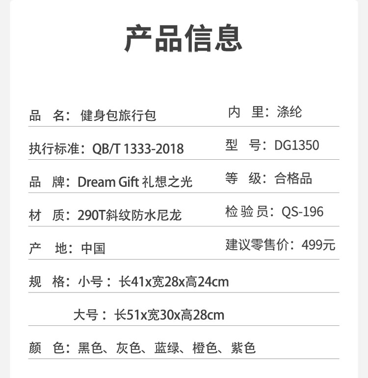 礼想之光干湿分离休闲运动健身旅行背包DG1350小号