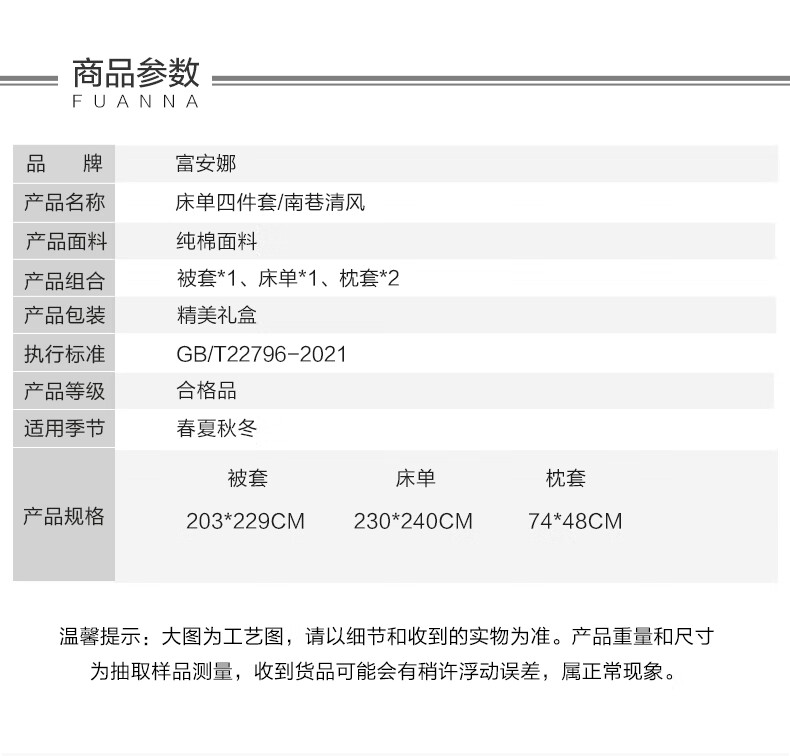 富安娜纯棉四件套-南巷清风