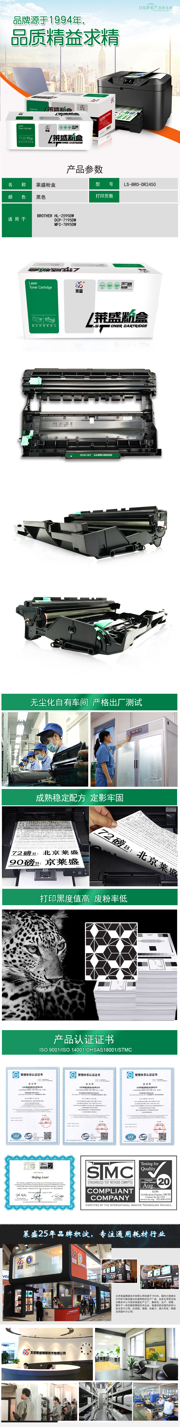 莱盛 LS-BRO-DR2450 鼓体单元 黑色适用兄弟HL-2595 DCP-7195 7090 7190 DR2450