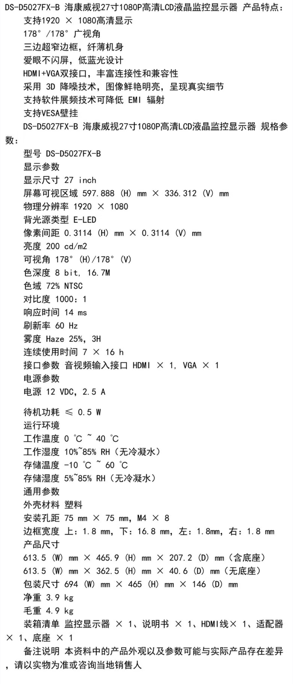 海康威视(HIKVISION)监控监视器显示器DS-D5024FX-B