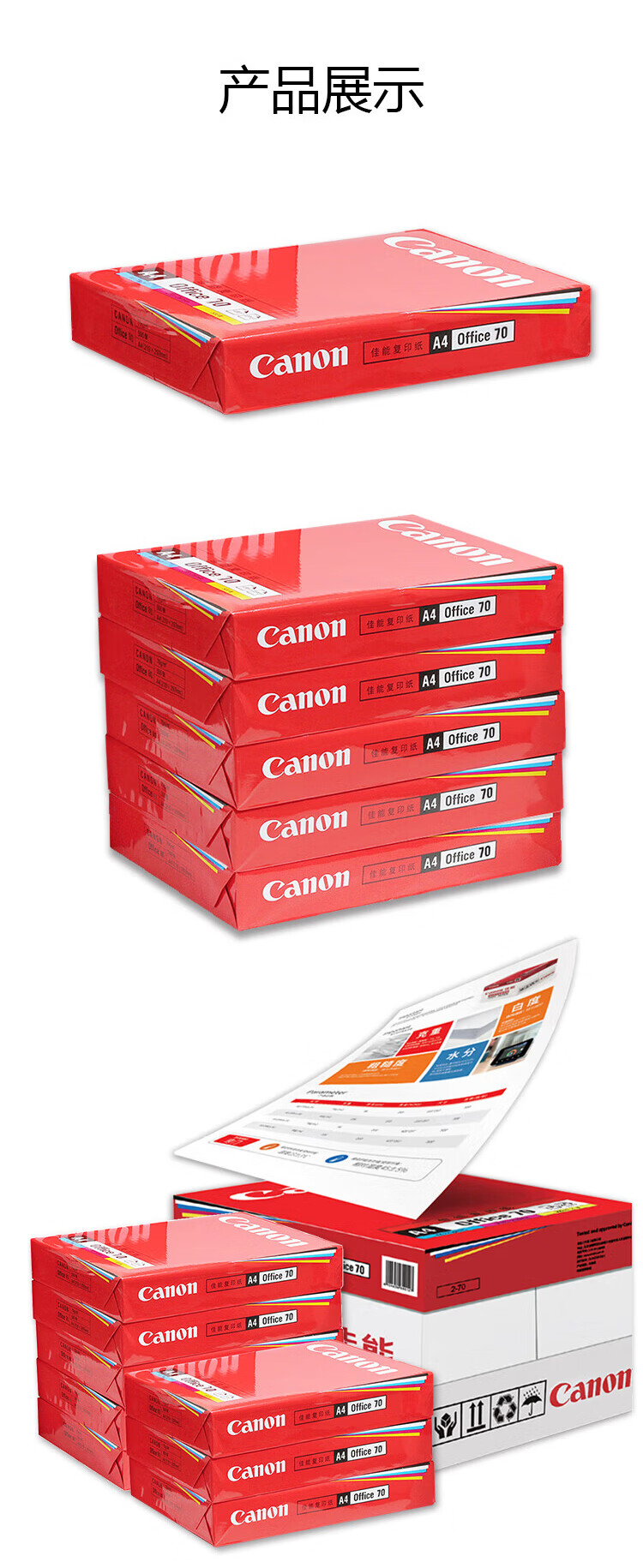 佳能(Canon)A4佳能复印纸70g/㎡ 5箱【500页/包 5包/箱】