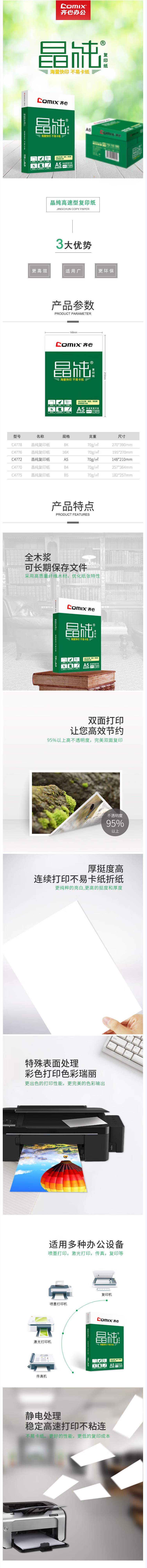 齐心(COMIX)C4772-10 晶纯复印纸 70克 A5 (10包/箱)