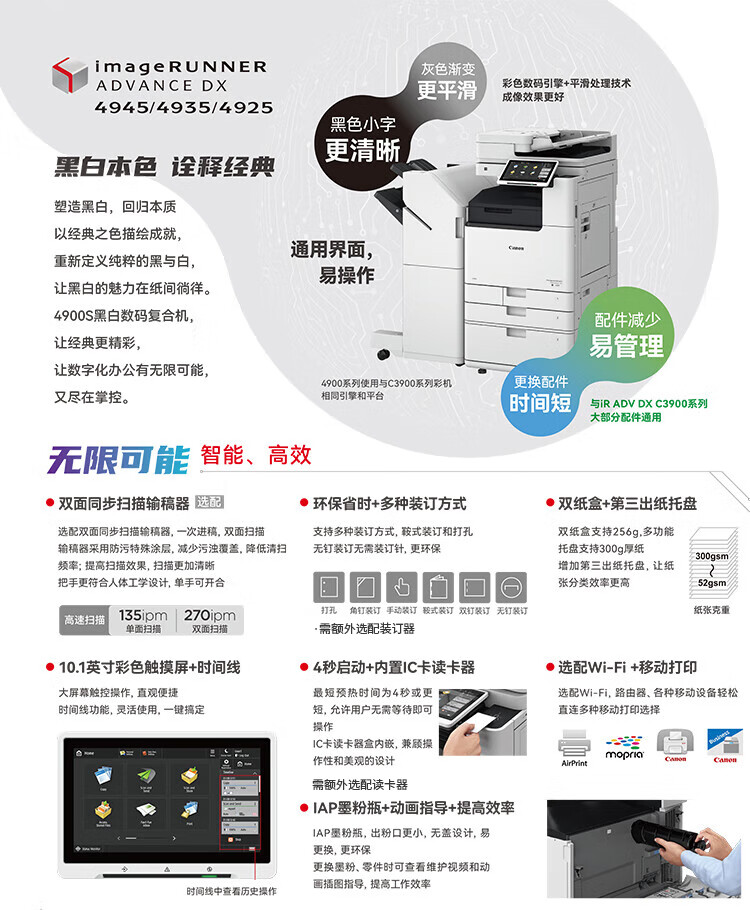 佳能(Canon)大型打印机iRA4945(4845升级版) 商用办公a3a4黑白复合机 双面复印/扫描/自动输稿器/工作台