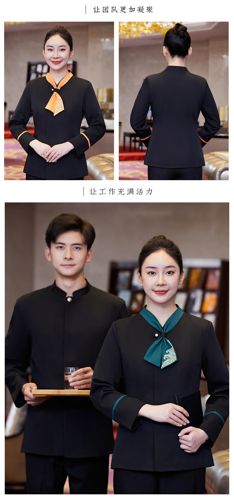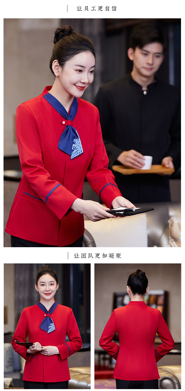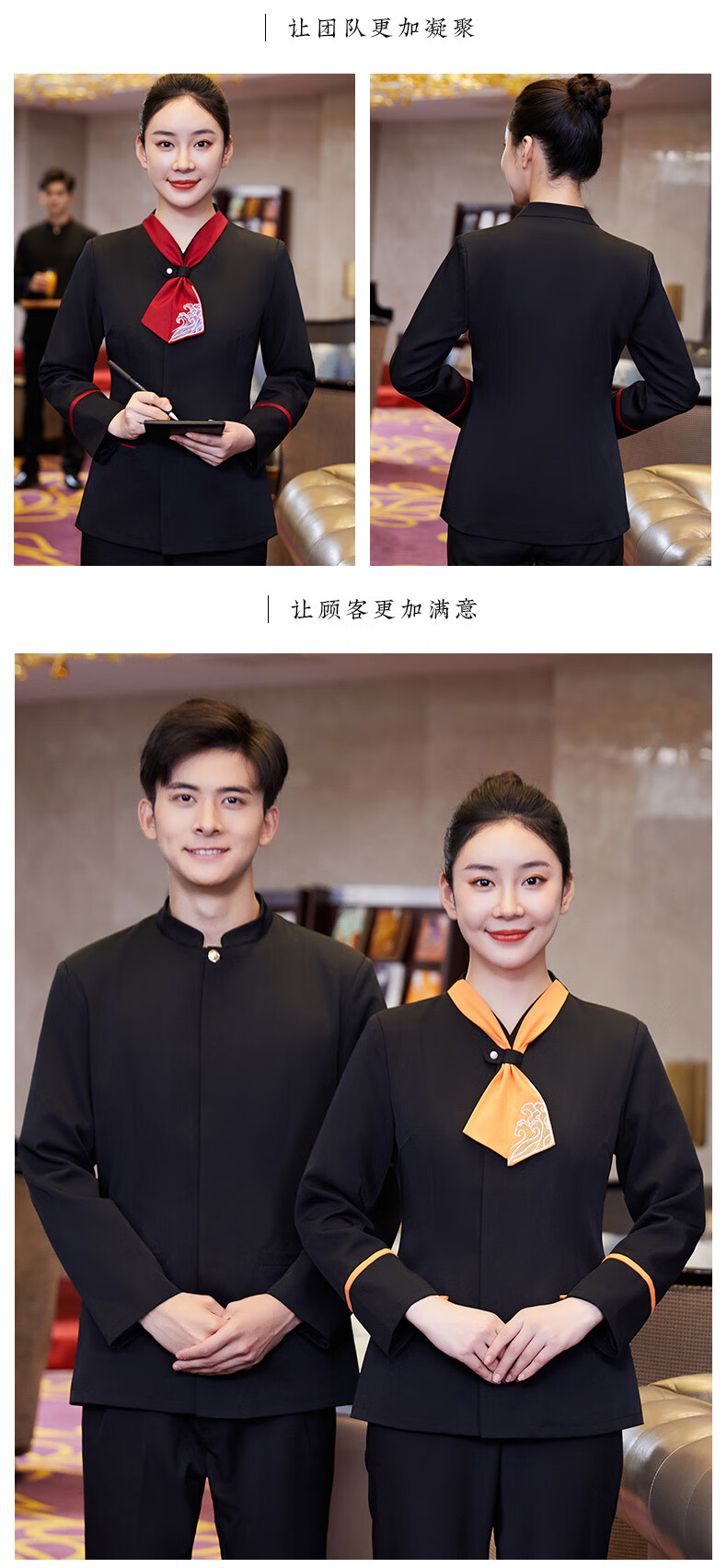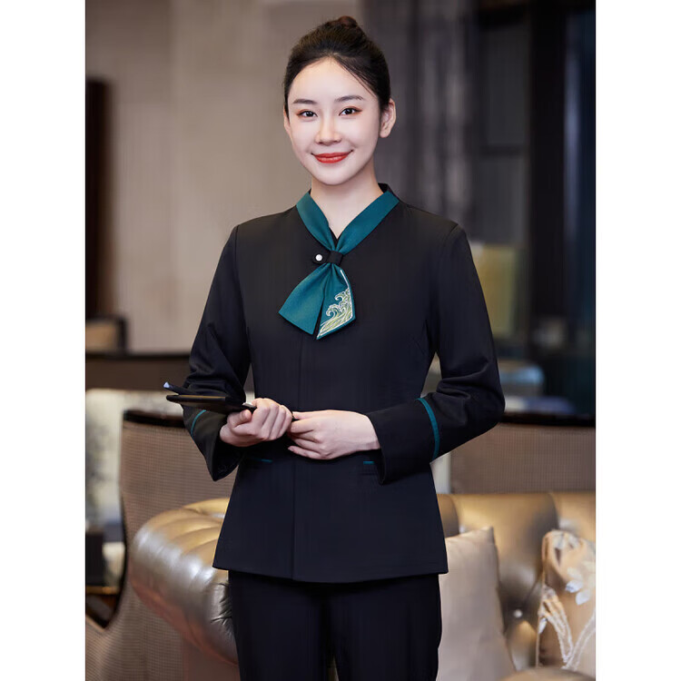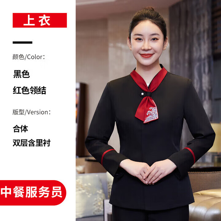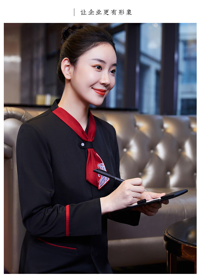 酒店服务员工作服女套装秋冬季工作服 女士黑色红领结