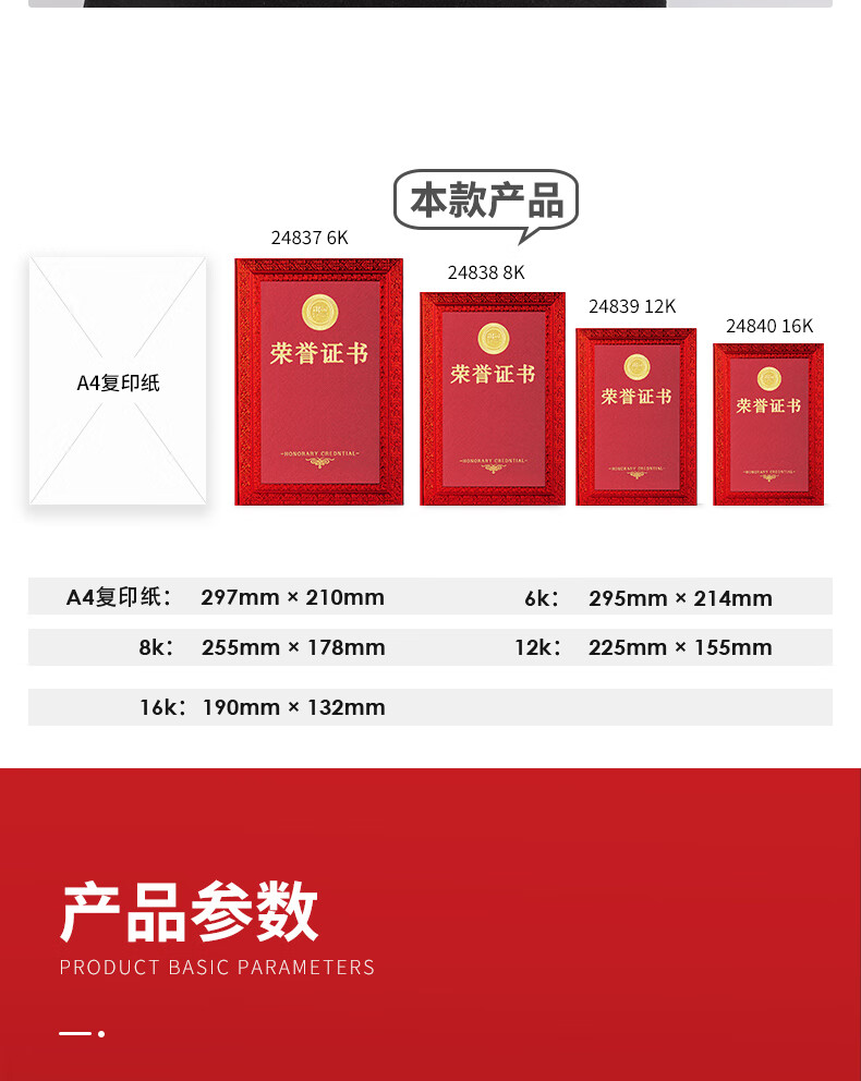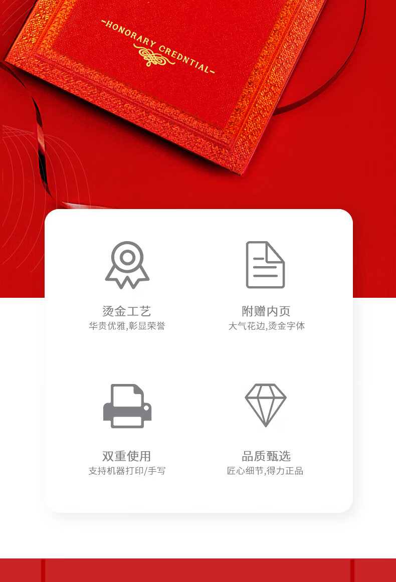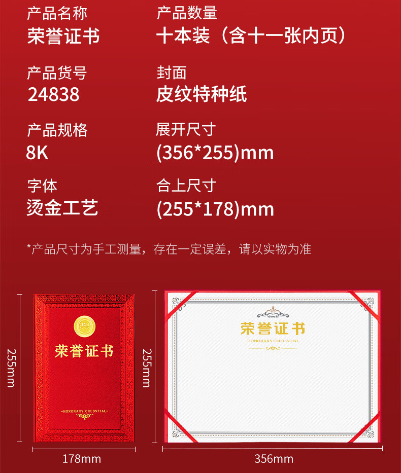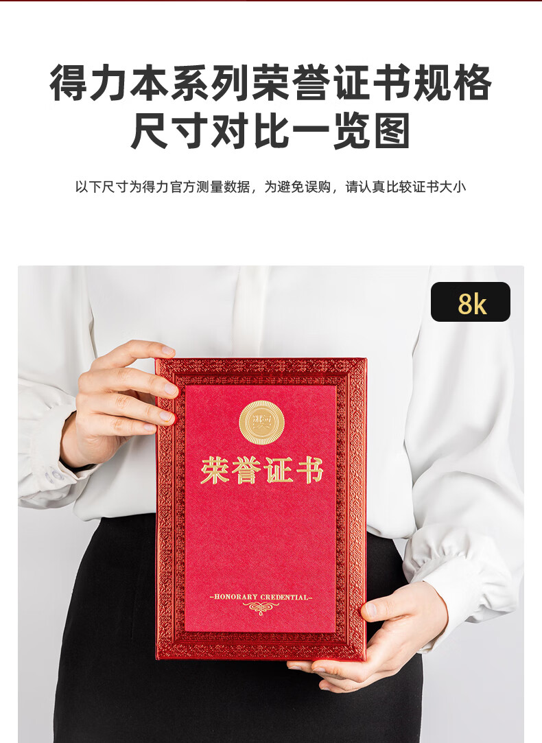 得力(deli) 24838荣誉证书8K(红色)*10本装