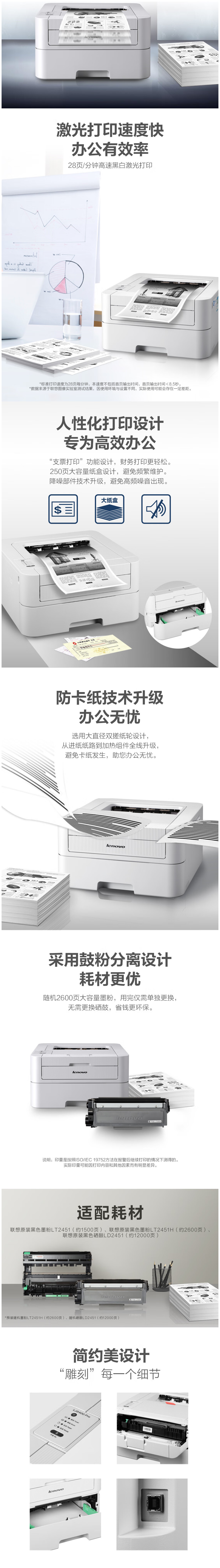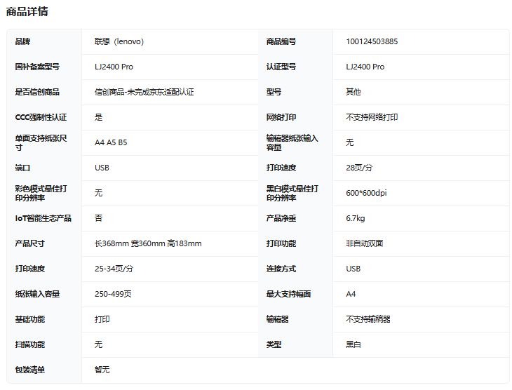联想(lenovo)LJ2400 Pro 黑白激光打印机