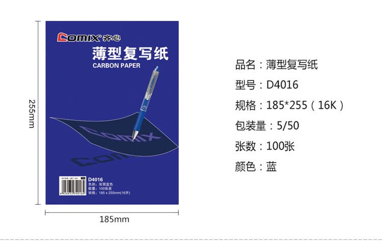 齐心 D4016 复写纸 16K 100页/本 2本/包装蓝色 单包