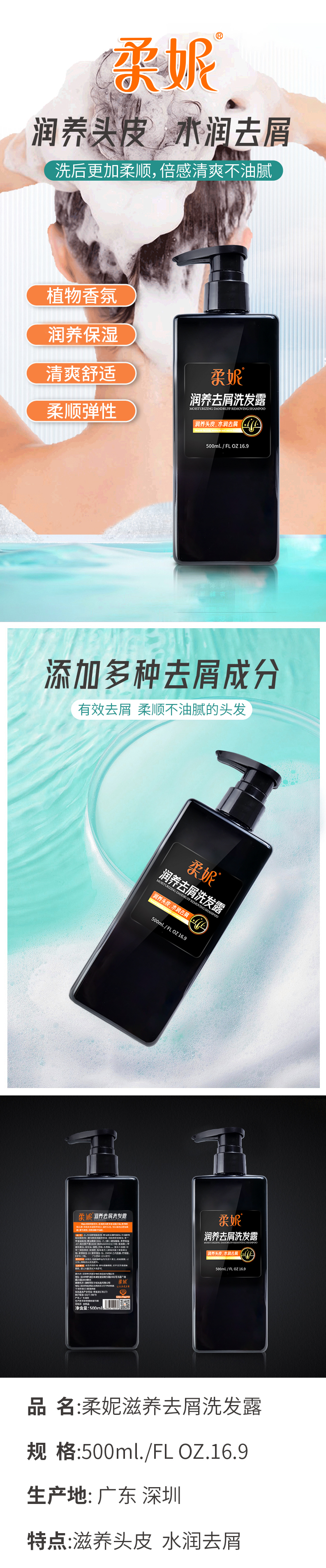 柔妮滋养去屑洗发露500ml 白色