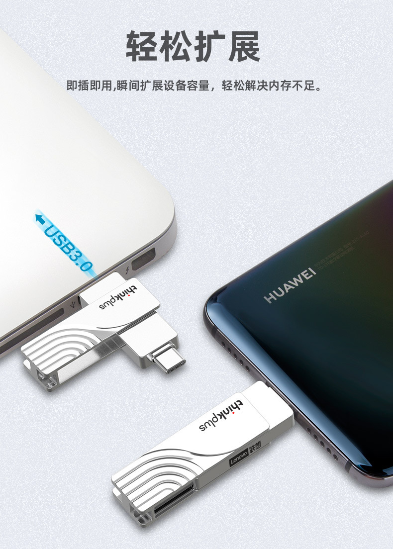 ThinkPLUSTPCU301(TYPE-C手机电脑两用优盘)+铁盒包装 银色