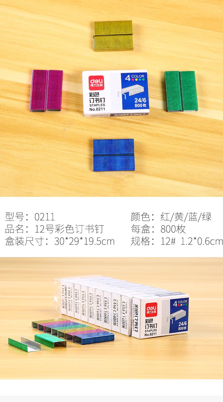 得力(deli) 0211 彩色订书钉12#混800枚/盒 单盒