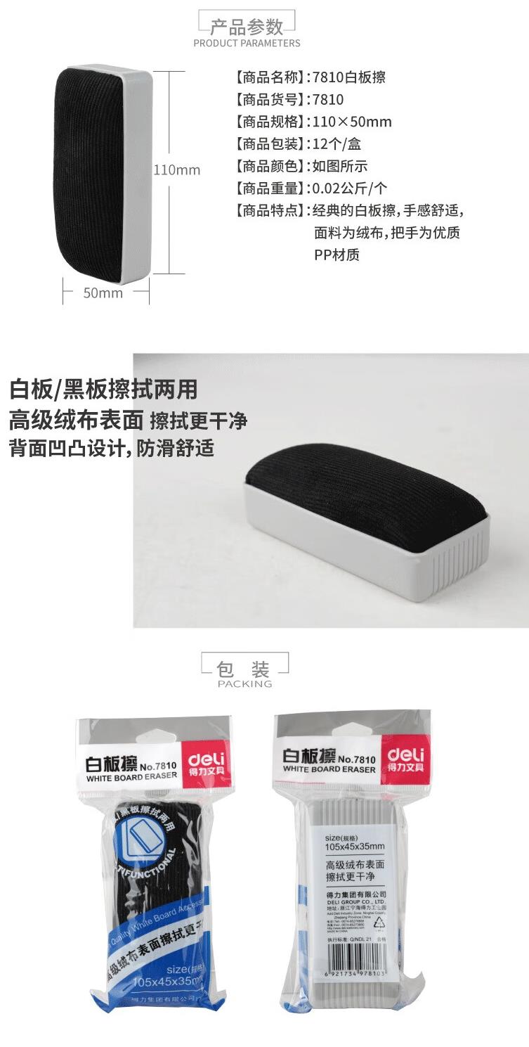 得力(deli)7810白板擦 黑板擦绒布海绵板刷 画板擦办公文具用品