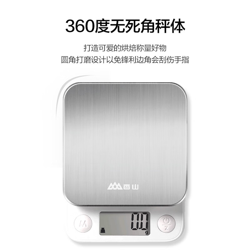 香山厨房秤 家用电子秤烘焙克秤0.1g高精度厨房食物称 不锈钢秤面