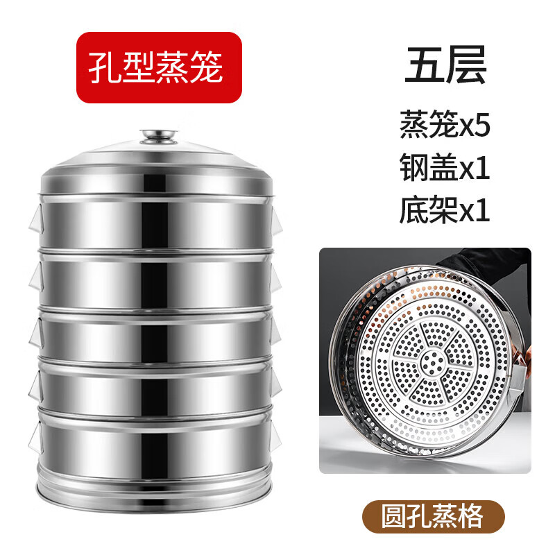 特睿思(TERUISI)52CM不锈钢蒸笼【5层】适用于1孔蒸包炉