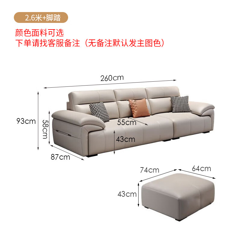 简昕真皮沙发客厅2025新款小户型直排沙发现代简约皮艺沙发868