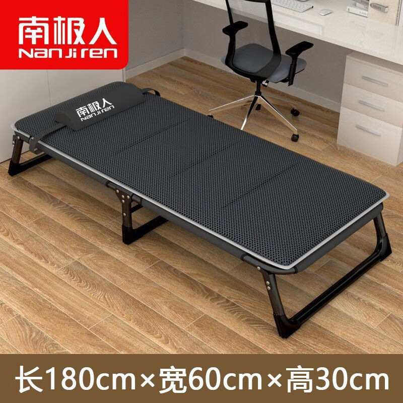 南极人(Nanjiren)午休折叠床单人床家用便携陪护躺椅办公室午睡行军床成人 加粗加固两折床-黑色+透气垫黑