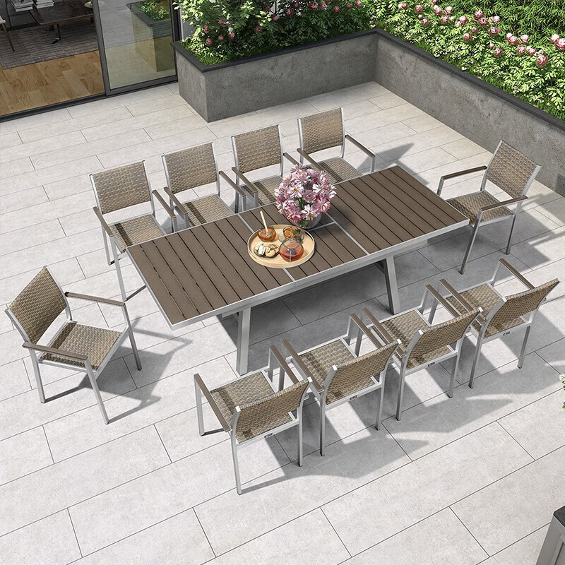 紫叶户外桌椅组合室外藤椅塑木休闲餐桌椅庭院花园阳台外摆可伸缩桌