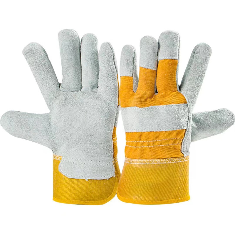 贸正牛皮电焊手套 焊工焊接隔热防烫耐磨工作干活 短款黄色 1付