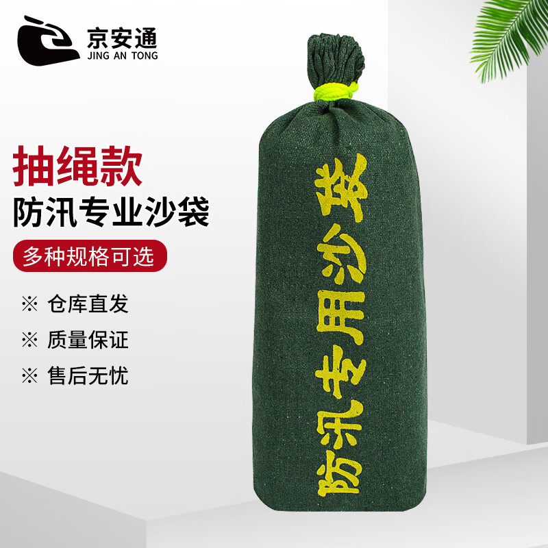 京安通 防汛专用沙袋 应急帆布消防防洪沙袋 抽绳款20*100cm 10个