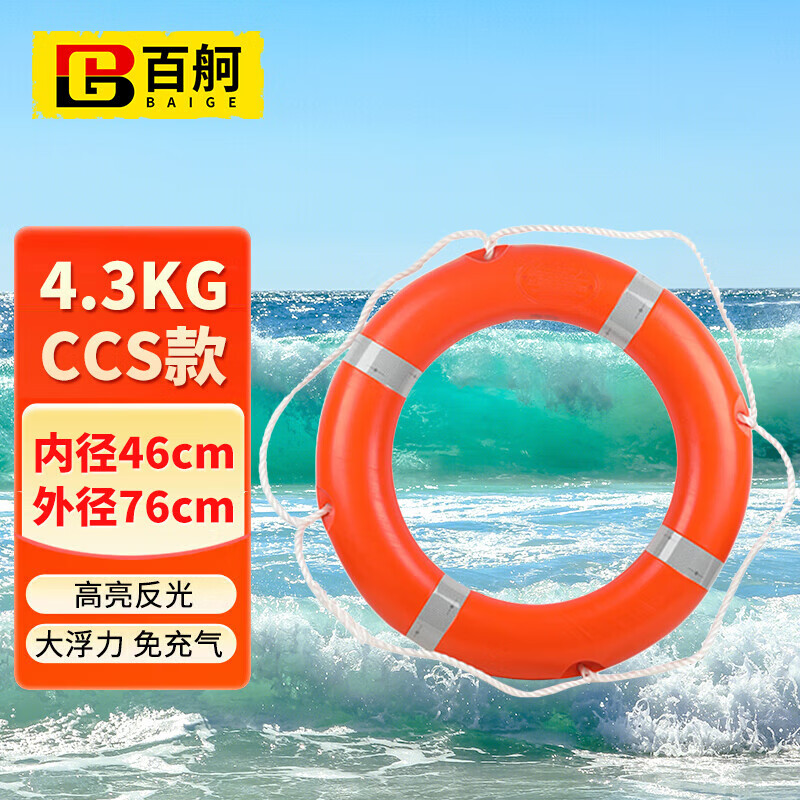百舸 防汛救生圈专业救生浮圈实心游泳 CCS款4.3kg