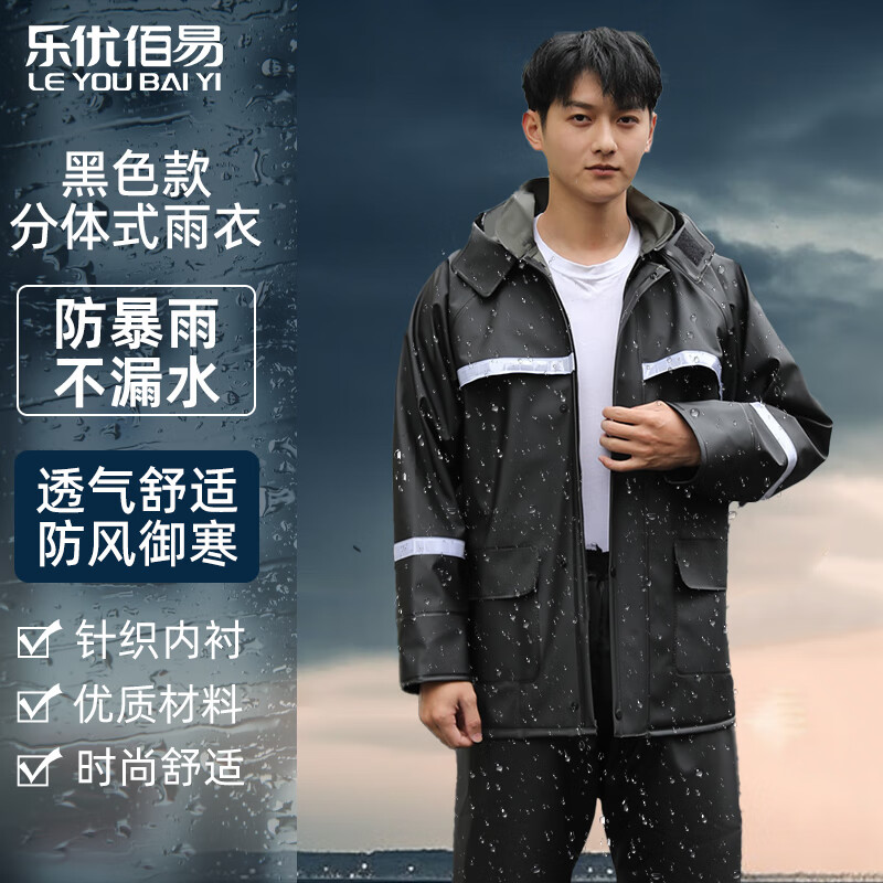 乐优佰易 雨衣雨裤套装 黑色XL 骑行全身防水暴雨分体反光