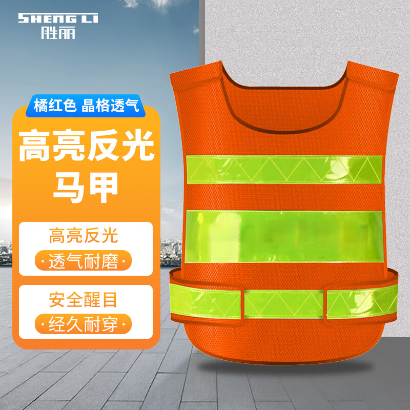 胜丽 反光背心晶格马甲交通环卫施工橘红色均码 1件