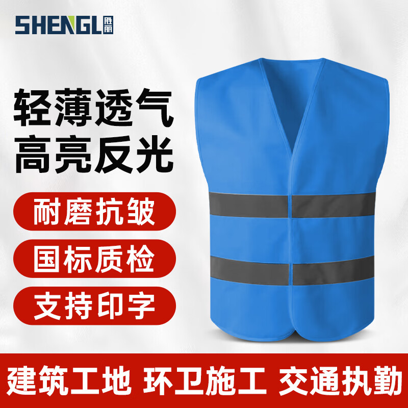 胜丽反光背心 反光马甲魔术贴 交通安全服可印字 蓝色 1件装